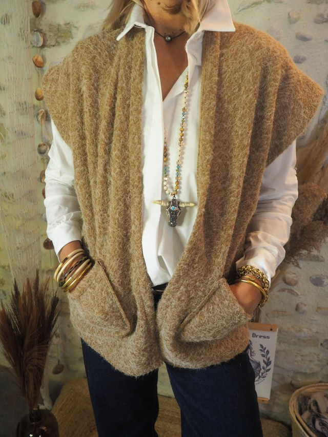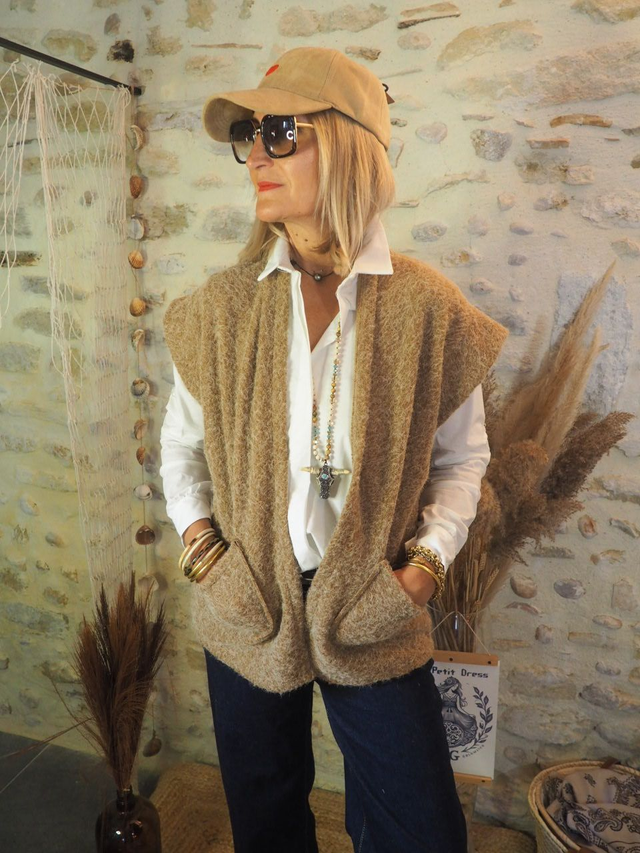 🤎 Gilet BOGOTA – Bouclette Beige & Superposition Stylée