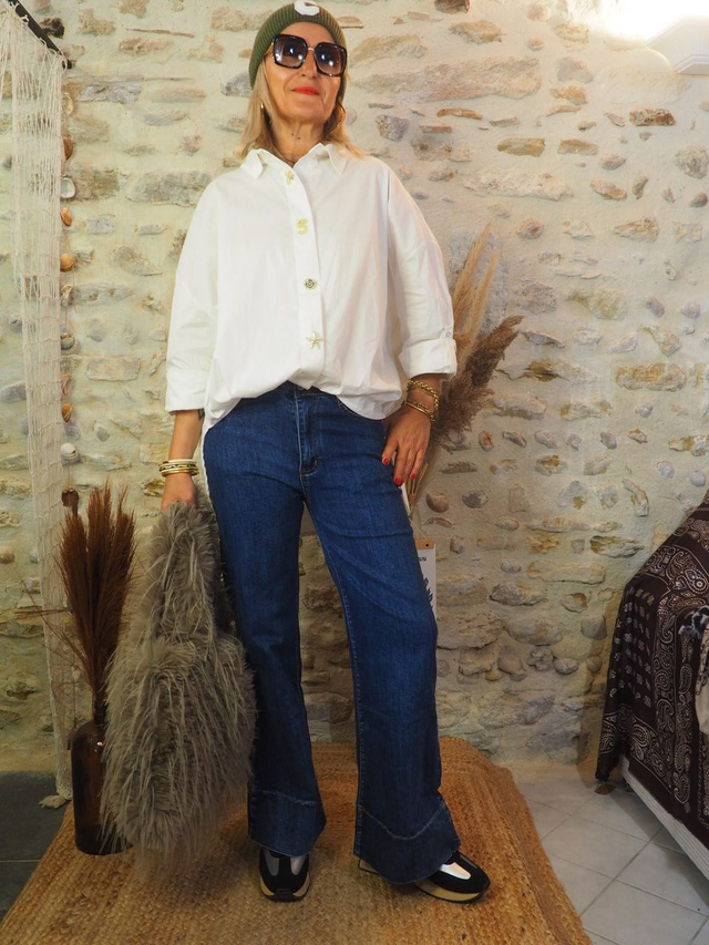 Le jeans JACKSON fait un retour remarqué dans le vestiaire avec son style rétro assumé. Inspiré des années 80, il séduit par sa coupe pattes d’éléphant en bas, son tombé impeccable et son allure affirmée. Une pièce phare pour celles qui aiment mixer vintage et modernité.