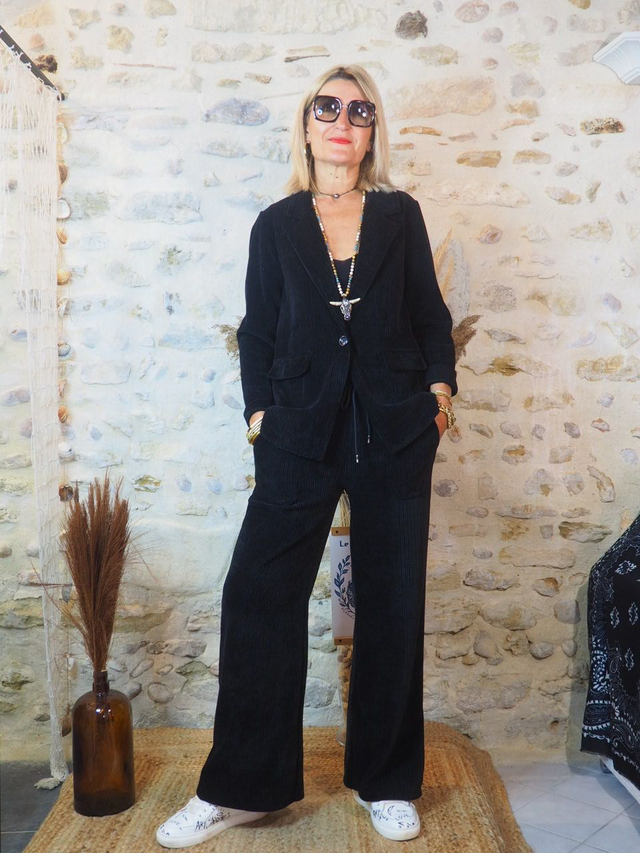 🖤 Pantalon SEATTLE Noir – Velours Côtelé & Confort Décontracté