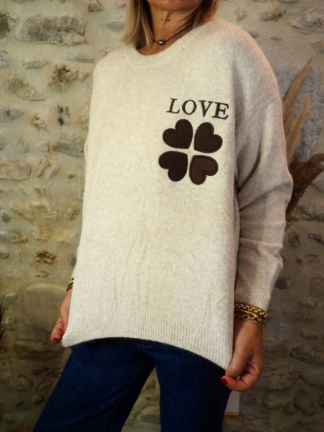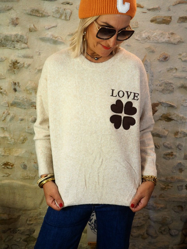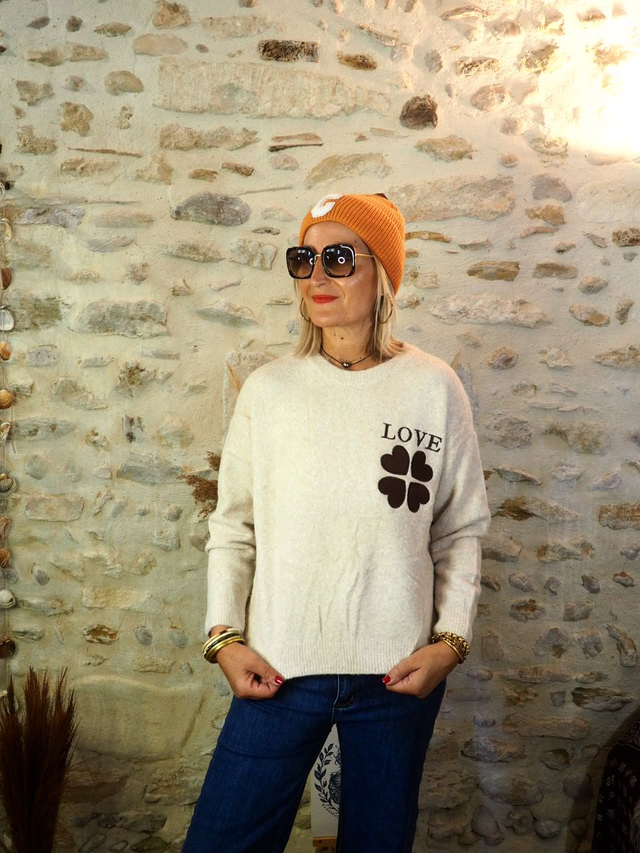 Le pull CHILI est une caresse à porter. Conçu dans une maille ultra-confortable contenant 15 % de laine, il offre chaleur et souplesse tout en restant léger. Sa teinte écru lumineuse s’accorde avec tout, et son logo “LOVE” accompagné d’un petit cœur brodé sur la poitrine ajoute une touche tendre et stylée.