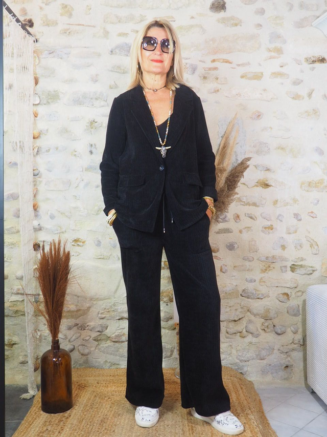đ€ Blazer AUSTIN Noir â Velours CĂŽtelĂ© Ras & Confort Absolu